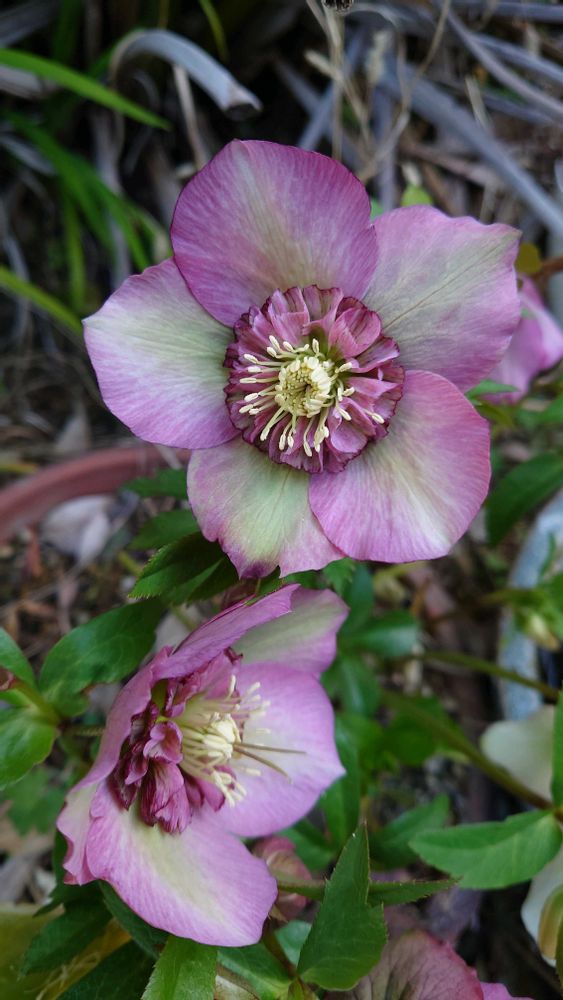 バイカラーのセミダブル2種と原種のクリスマスローズ