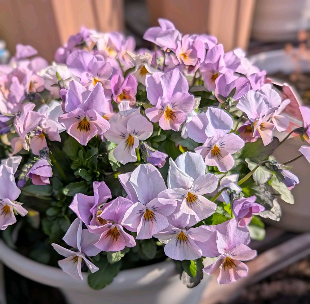 1年草を中心に鉢植え100鉢ぐらいを狭い庭でぎゅうぎゅうに育ててます。ペチュニア系、パンジービオラ系が好き。
