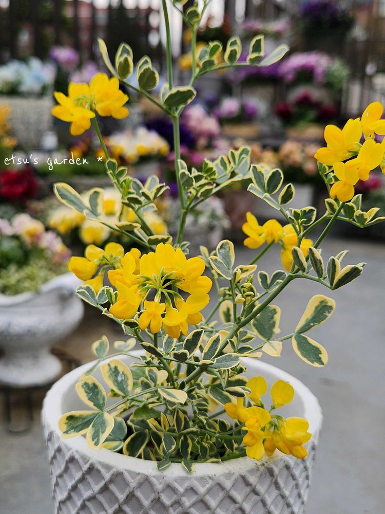 コロニアㄜƕ斑入りの葉にレモン色のお花春です根~ʚïɞ•*¨*•✿*゚💛🪴