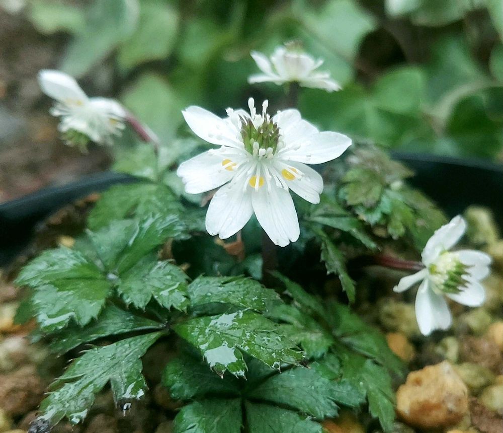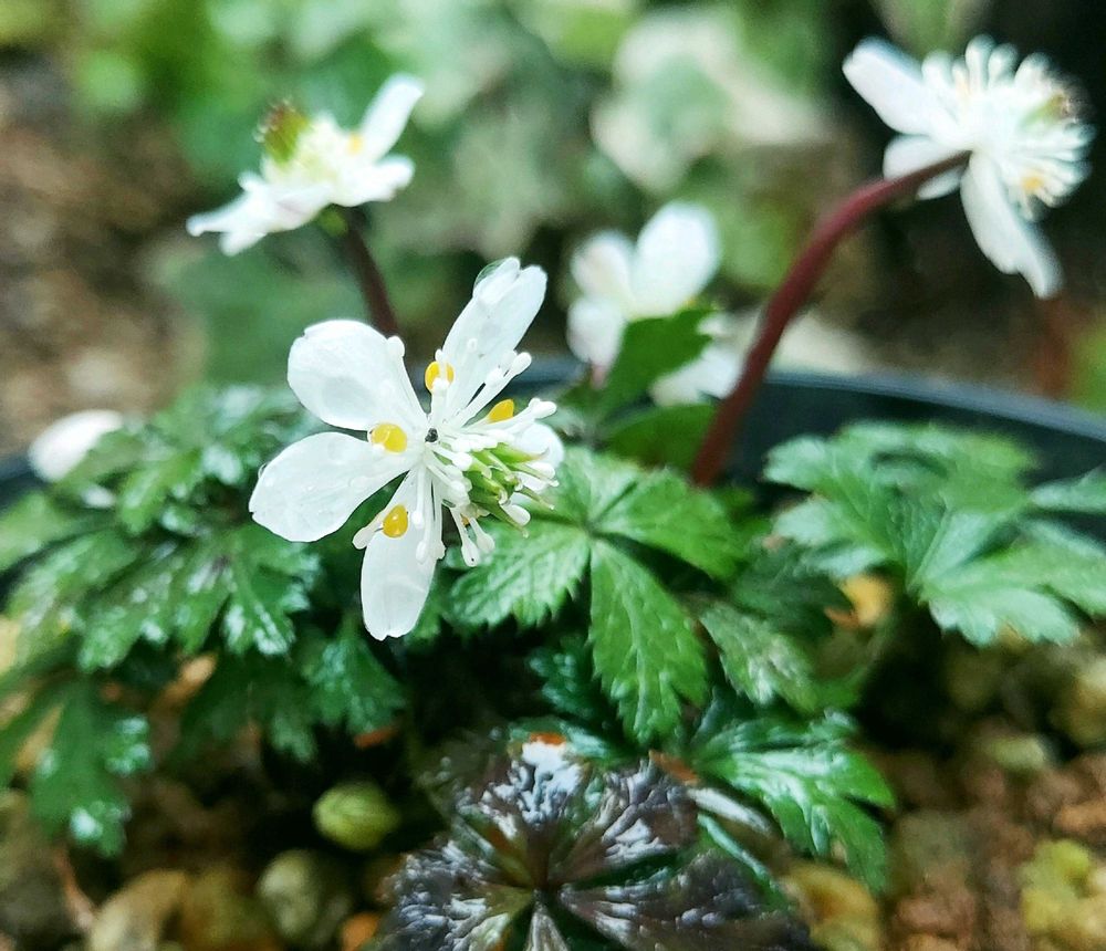 マンちゃん、まみさんのお庭で、バイカオウレンが咲いたんですって🤭