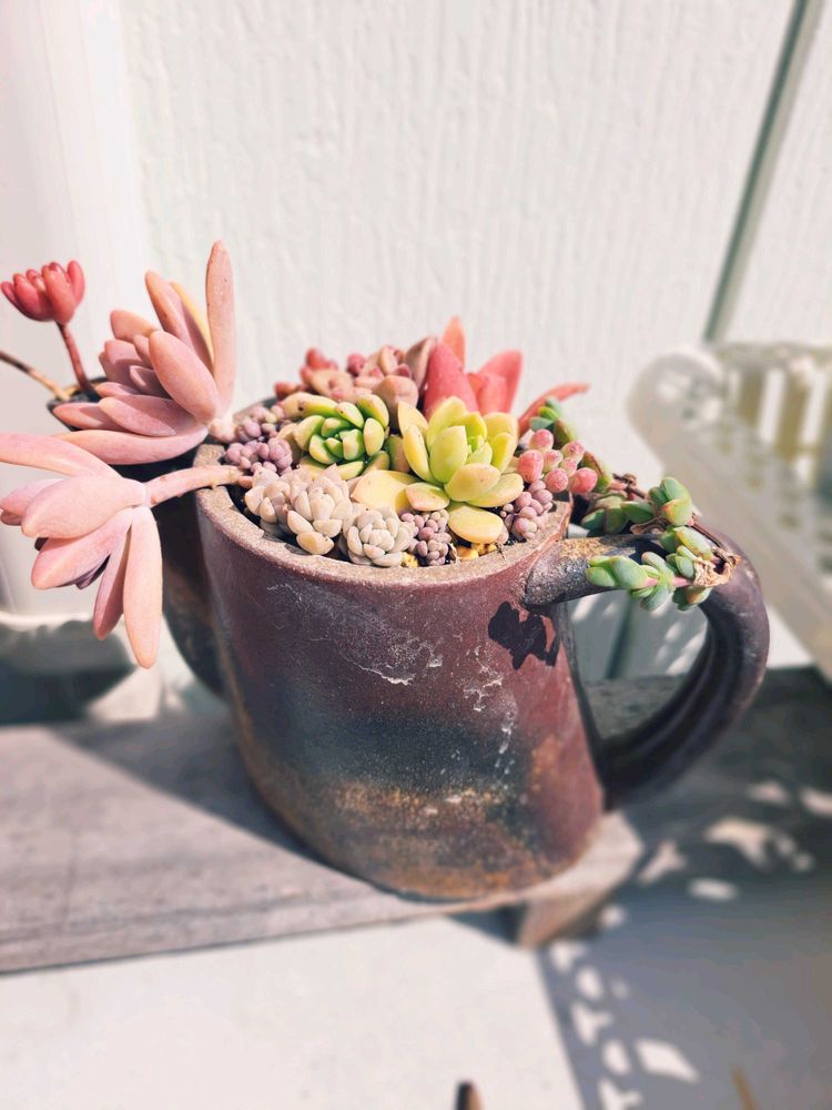 急須、これ自体が素敵やのに寄せ植えでメッチャ素敵🥰✨