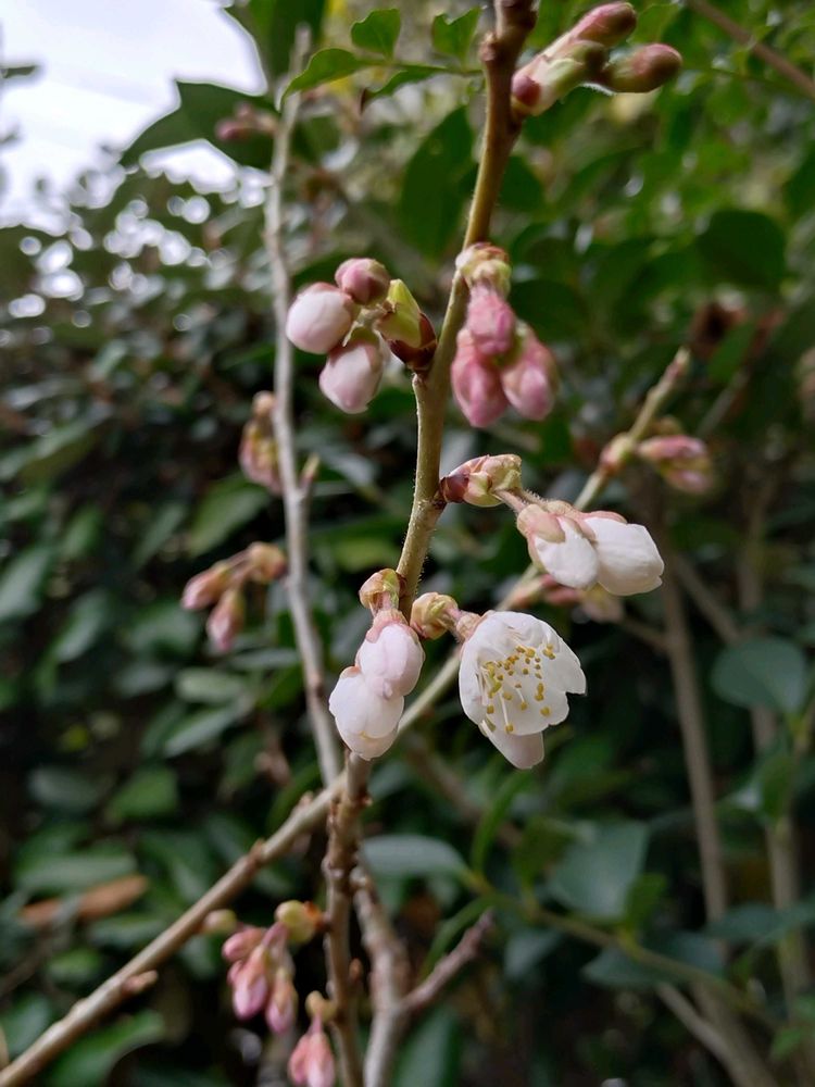 まだ1割も咲いてないけど暖地さくらんぼの花が咲き始めたよ