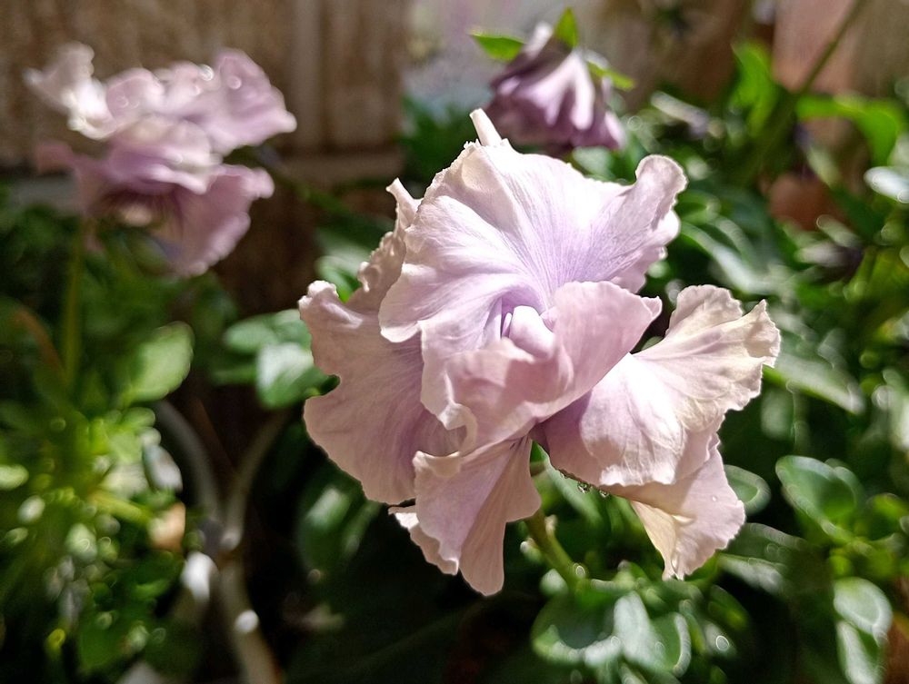 風雪❄🍃で花も無くなっていたパンジーやビオラが花茎を上げだし、なかなか🏠️🚪中には入れません📱📸😅