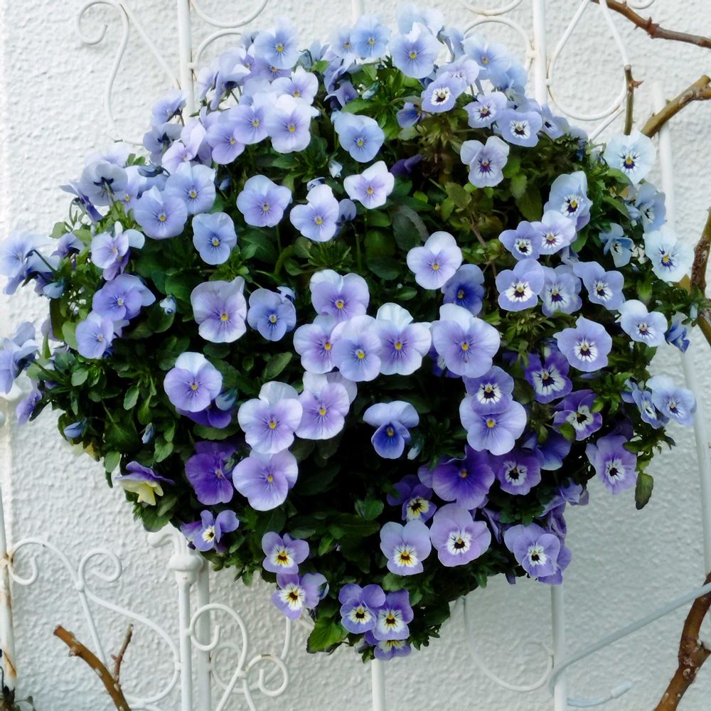 こんもりと素敵な水色🩵のハンギングですね♡すごく丁寧にお花の手入れをされているのがわかります❣️