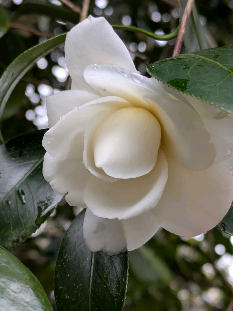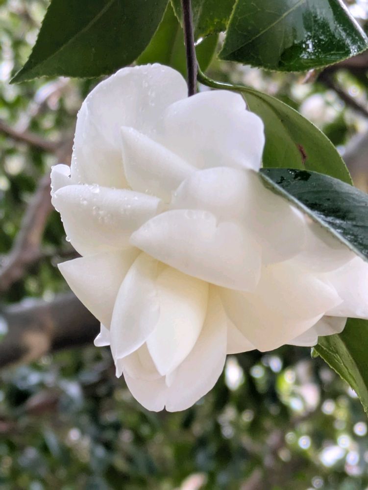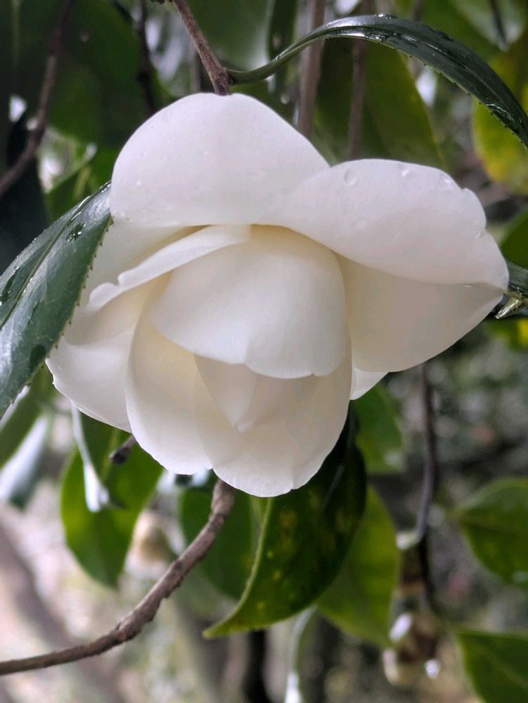 白い椿 枝垂れ咲き