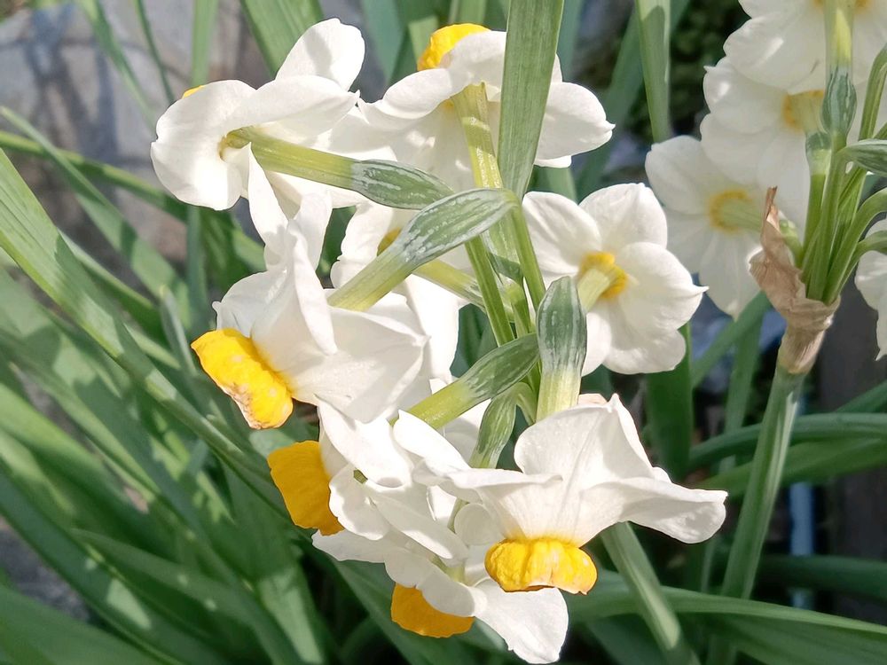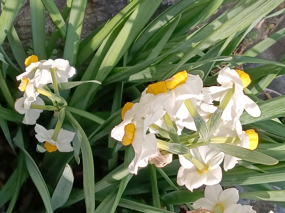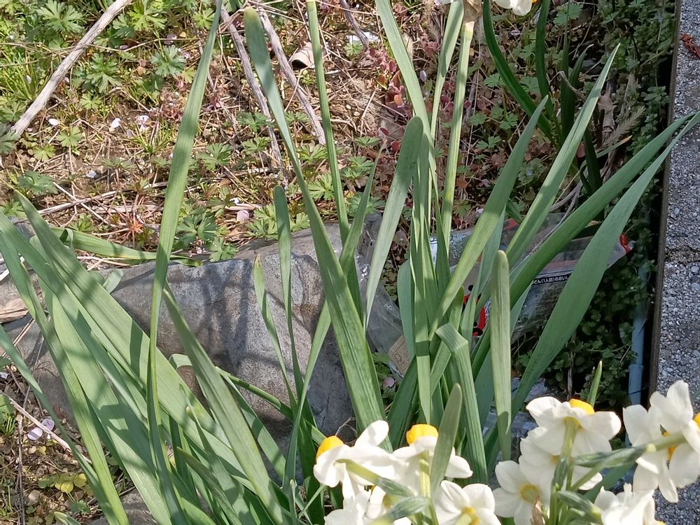 日本水仙のお花、綺麗に咲いています…気温が少し高く成っていますが、曇天。花粉症でお鼻がズルズル、目が痒い〜辛いです🤧👀