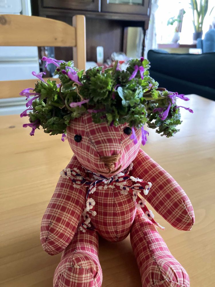 出来上がったので、くまちゃんの頭へ🤭どお?😇