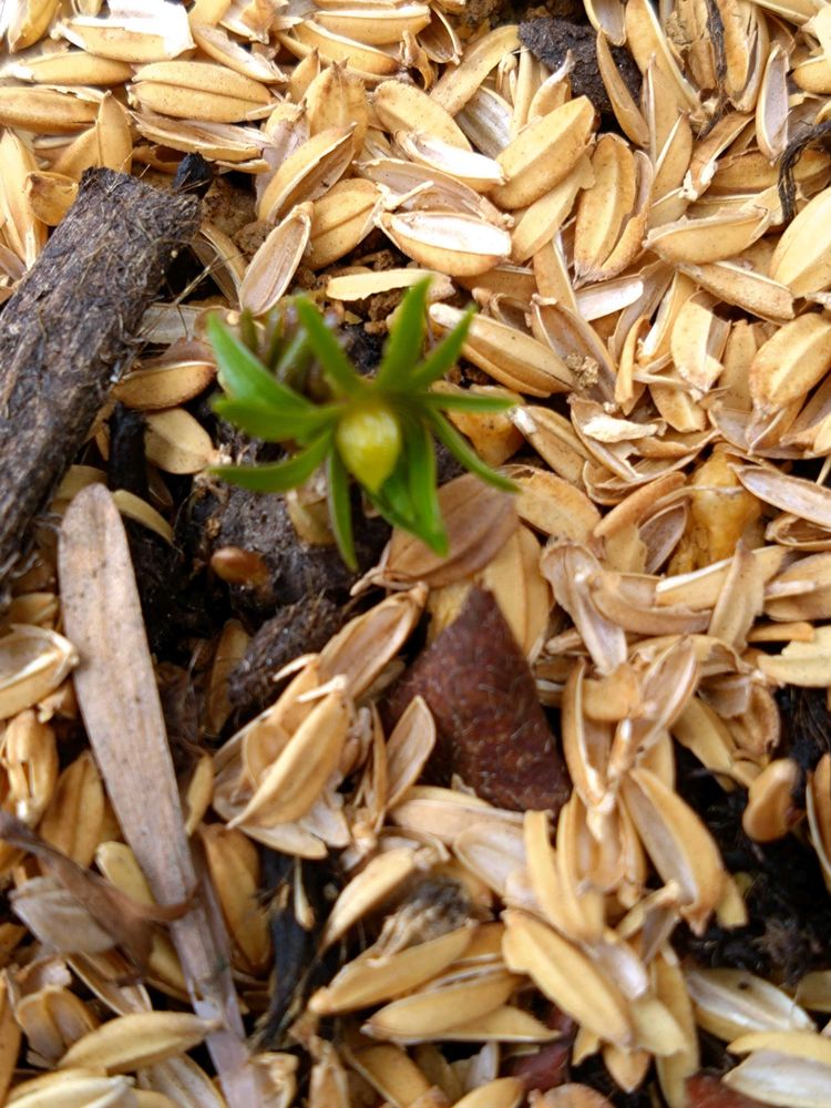 そのうち2個が芽生え、ひとつは小さな小さなお花を咲かせています。