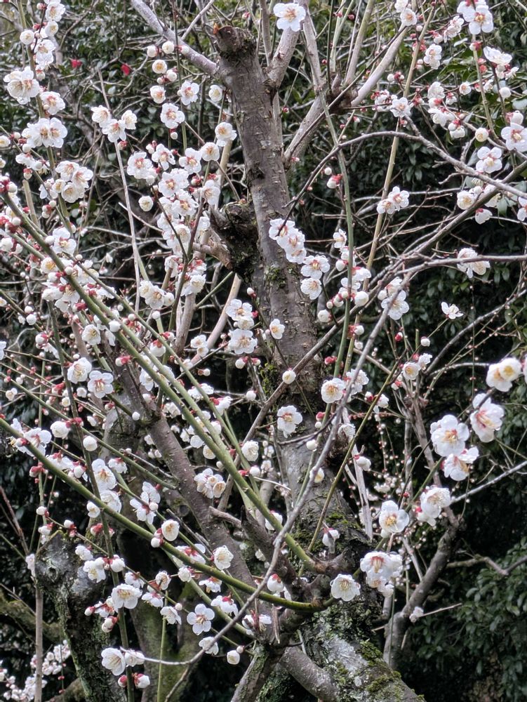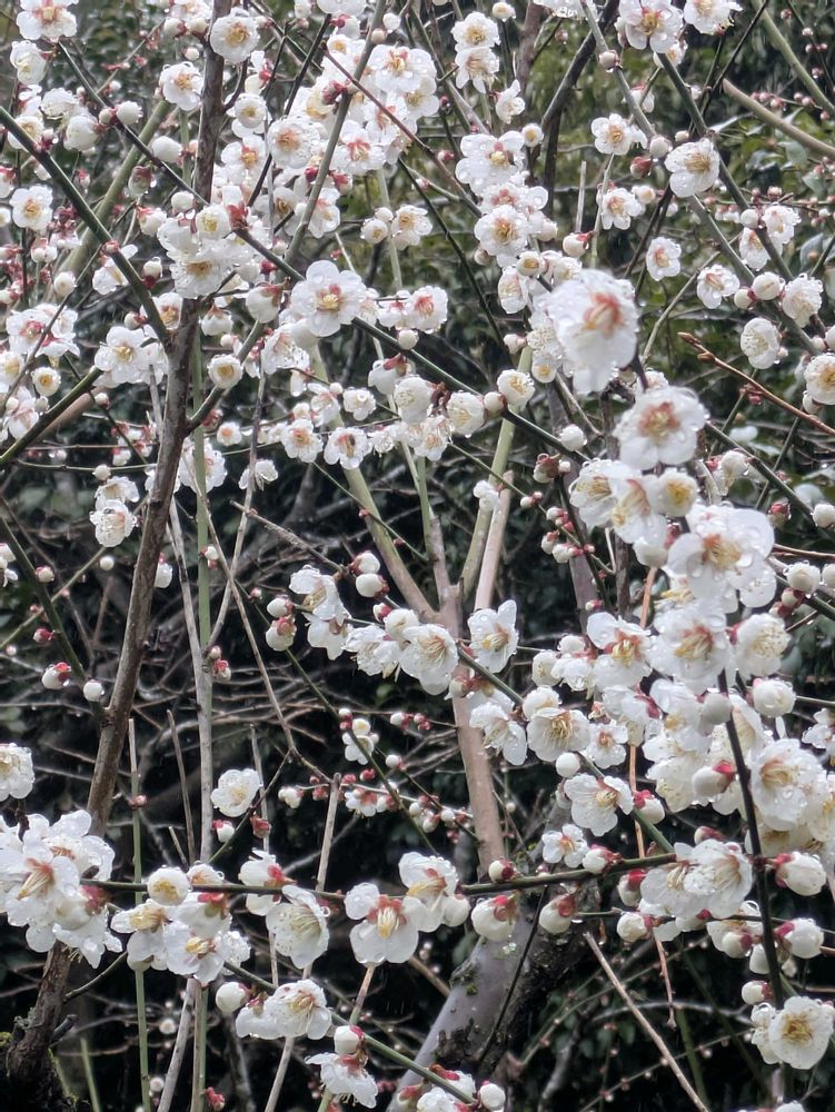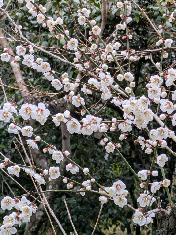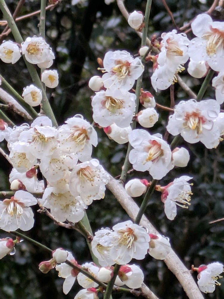 降ったり止んだりで鳥も虫も見かけませんが、ウメは満開を迎えました
