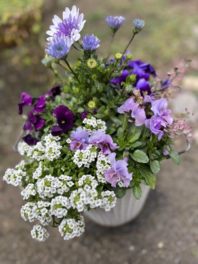 素敵な寄せ植えですね〜💙🤍🩵💜