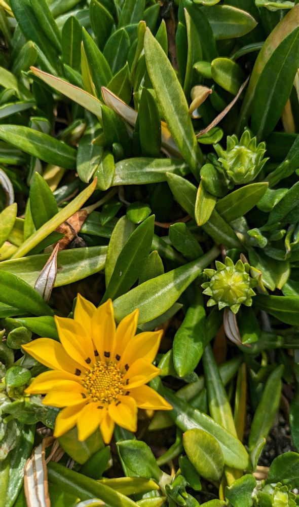 3枚目のガザニアが商業施設の花壇に咲いていました😊 黄色のお花は元気が出ますね🤗