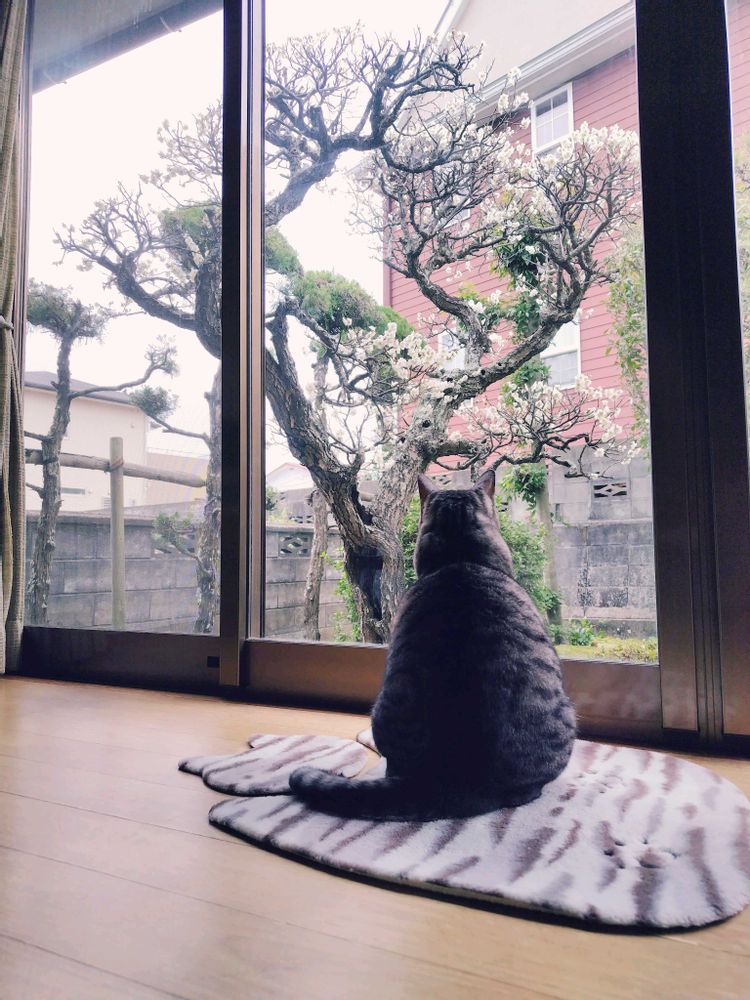 今週ようやく満開になった梅👏ネコはバードウォッチングに夢中🐤🐥