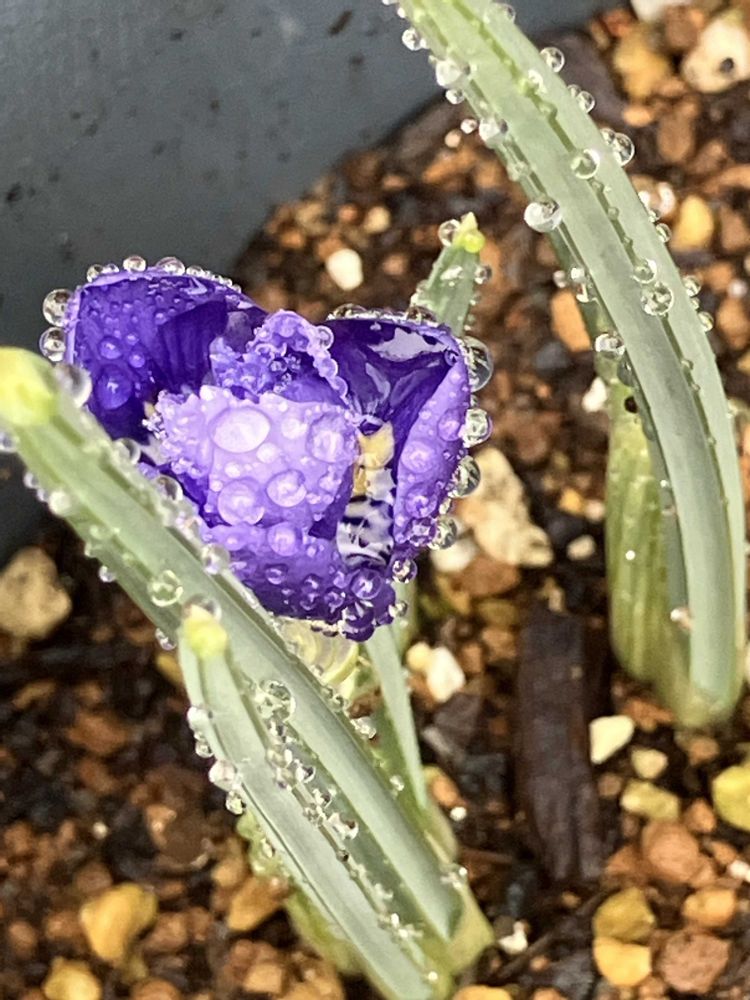 今日は朝から雨で雨粒まみれのミニアイリスさんです😁💜