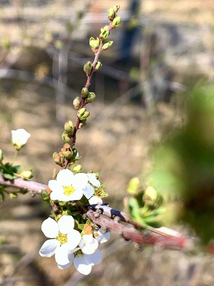 庭のユキヤナギがチラチラ咲き始めました𑁍ࠬܓ 🎶
