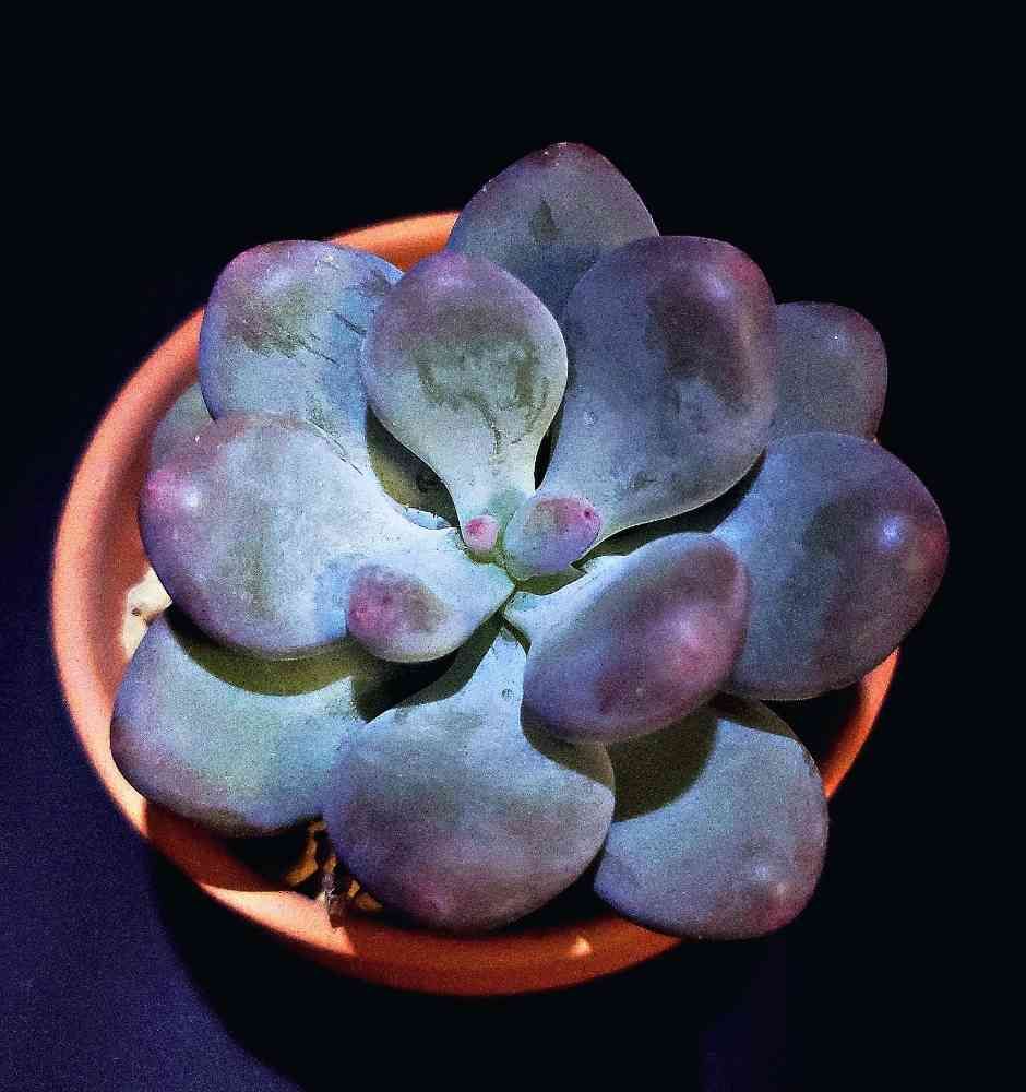多肉は基本的に赤系や錦系などの派手好きですが、このフォルムと名前負けしない渋い青系の色合いに惚れました。