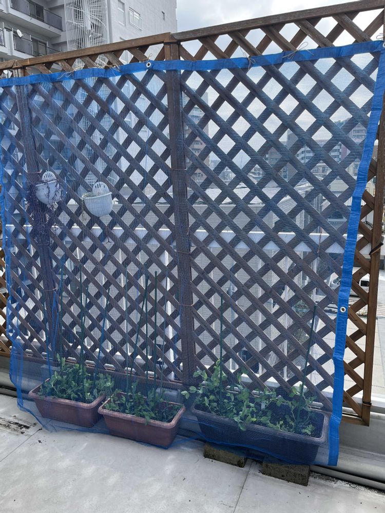 ③鳥被害対策でネットを設置!これで、中のサヤエンドウは無事なはずです!