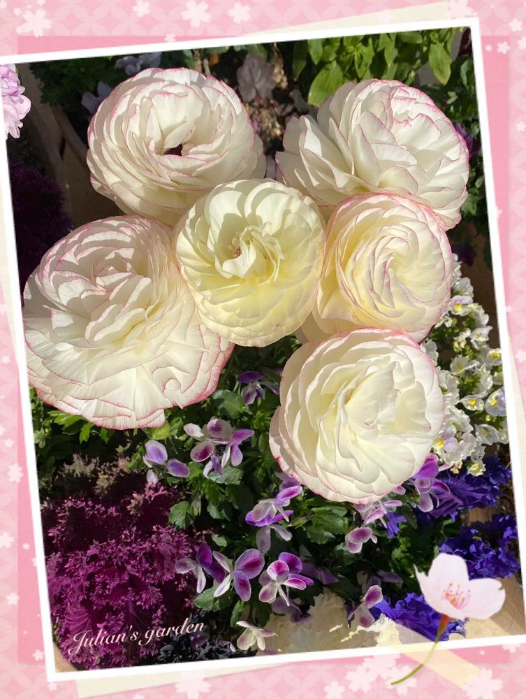 ラナンキュラス、お姫様のドレスみたいに素敵ですね💓最近花屋さんにいろんなラナンキュラスがあって誘われちゃってますが、この白にピンクの縁取りは際立って麗しいですよね💓💓💓こんなに咲いてて埋もれないたいくらい素敵💓