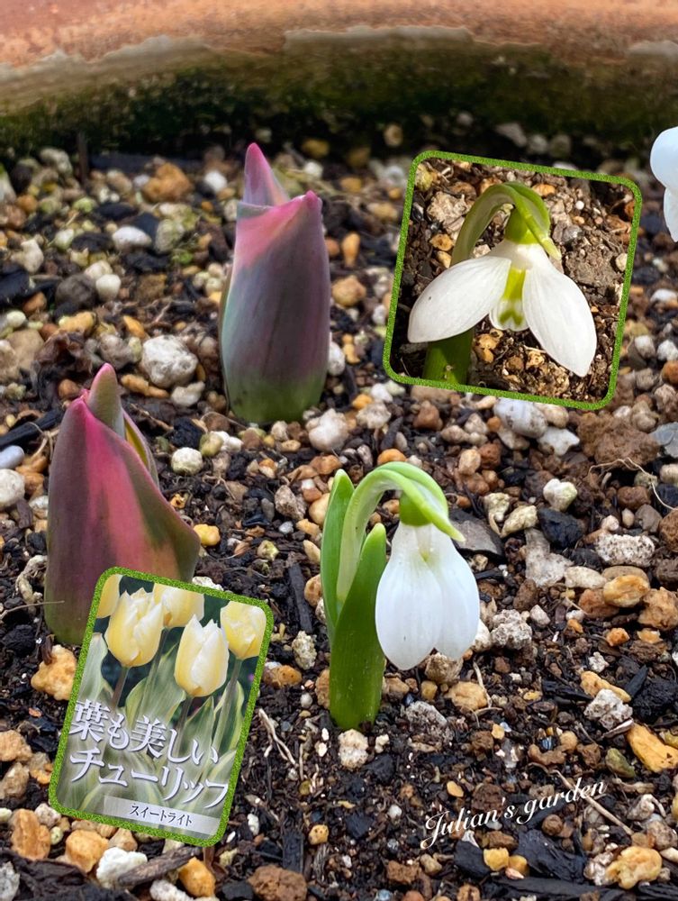 スノードロップは肥料か水不足で成長が足りなかったのか寒暖差で伸びきらずだったのかわからないですが これはこれで可愛いから良しとしよっと😅