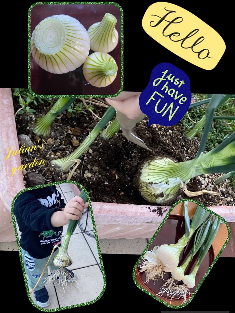 白い玉ねぎ、大きく育ってますね‼️柔らかそう‼️お孫ちゃんのよい経験になりすね。