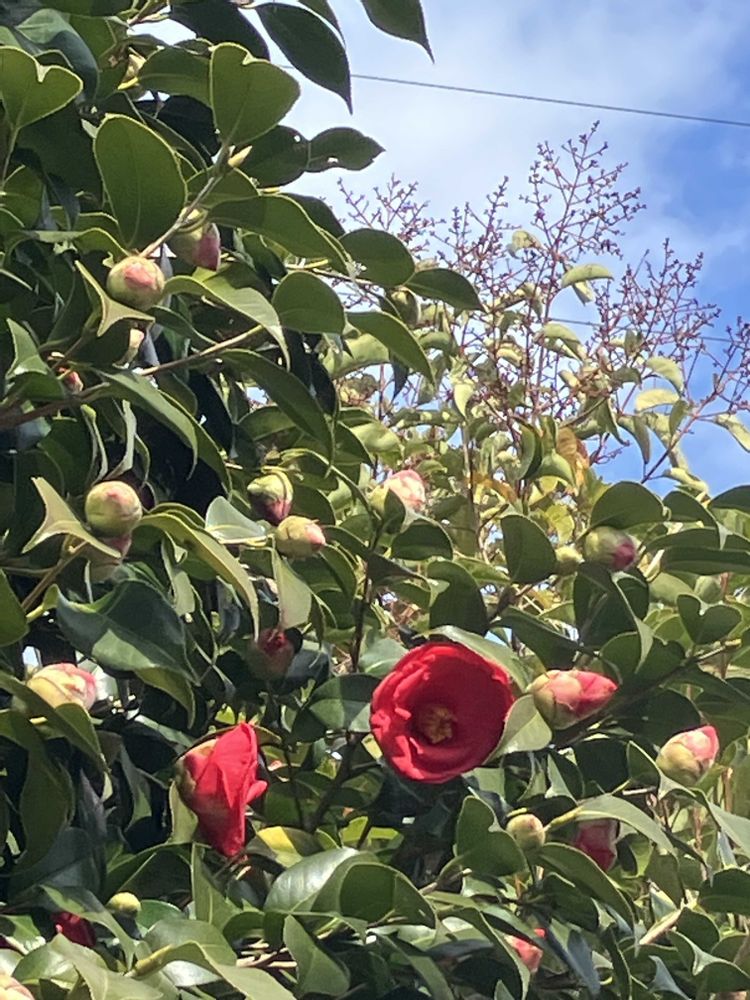 散歩道や、お隣さんちのツバキばかりで,私の家🏠のツバキは,まだ蕾固くて,いつになったら咲いてくれるんだろと思うくらいです🤣サラダばぁさんちは、赤く色が分かるから,開花は,近いですよね😄