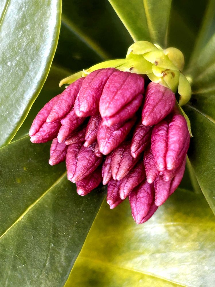 2月初め頃の蕾が、1ヶ月後に花が開き、あたりはフローラルな甘い香りがしています