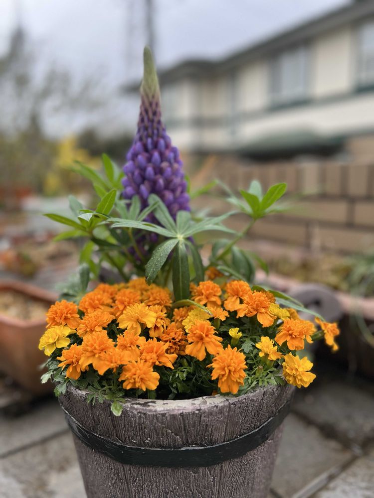 お馬のけーこさんのテラス,ルピナス,マリーゴールドポンポンブーケの投稿画像