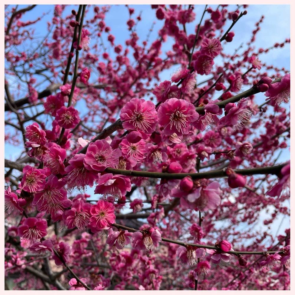 この紅梅の下にずっと座っていたいほど〜🤭満開〜圧巻〜サイコー❣️だったよ♬