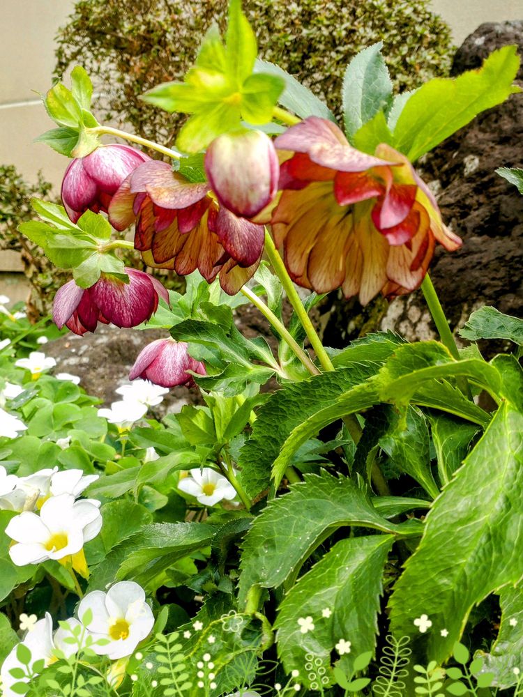 気温が上がってきたので…寄せ植えの葉牡丹がニョキニョキです🥦✨2picは昨日娘と花散歩👣で見つけた美しいクリローさん🥀お寺の和風な庭園に不思議とマッチしていました😍👌