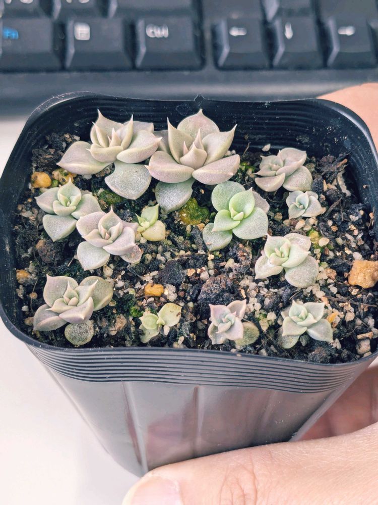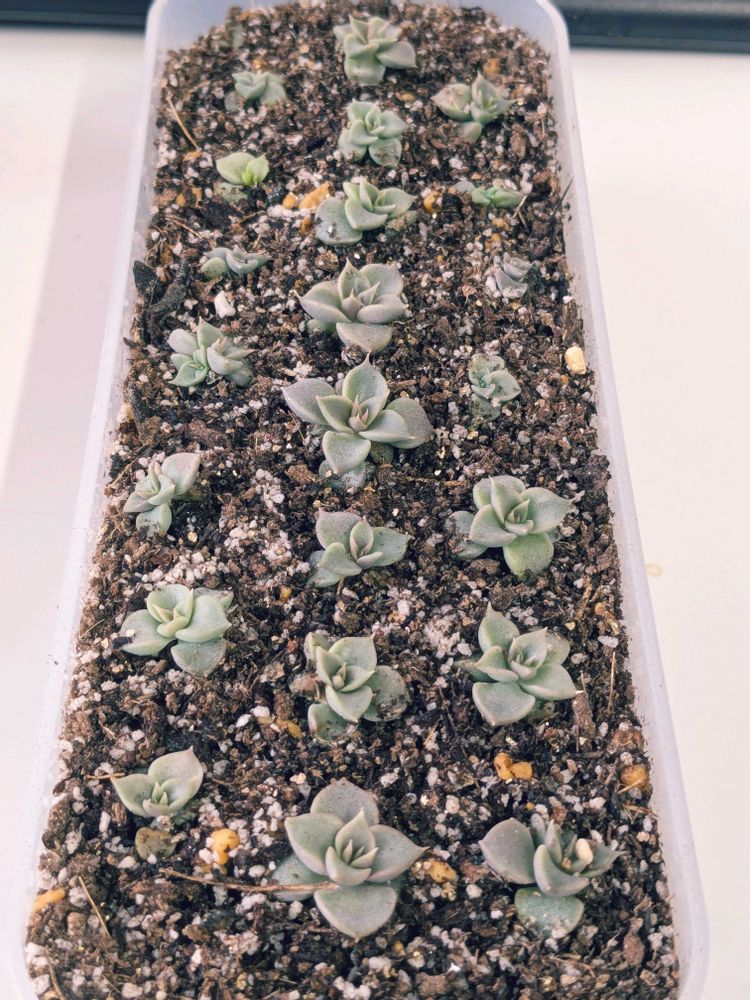 2024.07.01 突如多肉植物に興味を持ちました。 2025.07.01 無事(?)2年生に進級。 スペースもないのに実生に手を出し、芽が出た、本葉が出たと一喜一憂しています。綺麗系を綺麗に育てるのが目標です🤣