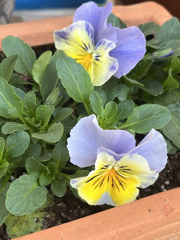 初めてパンジーの種撒きで咲いてくれました🌼🍃ブルー🩵なちゃん