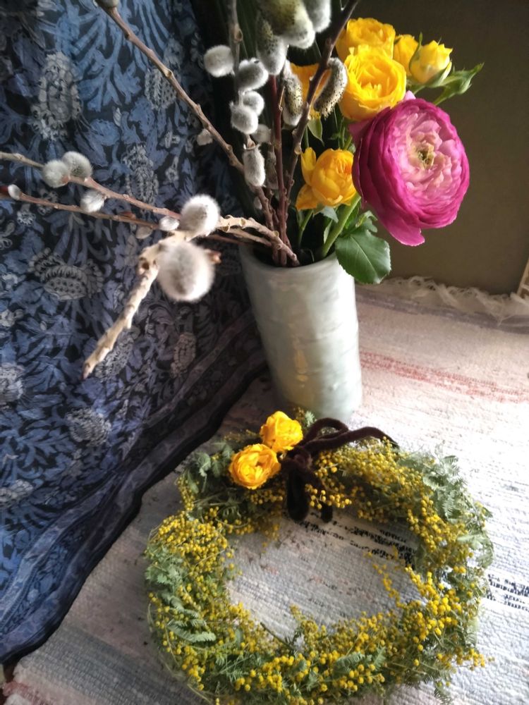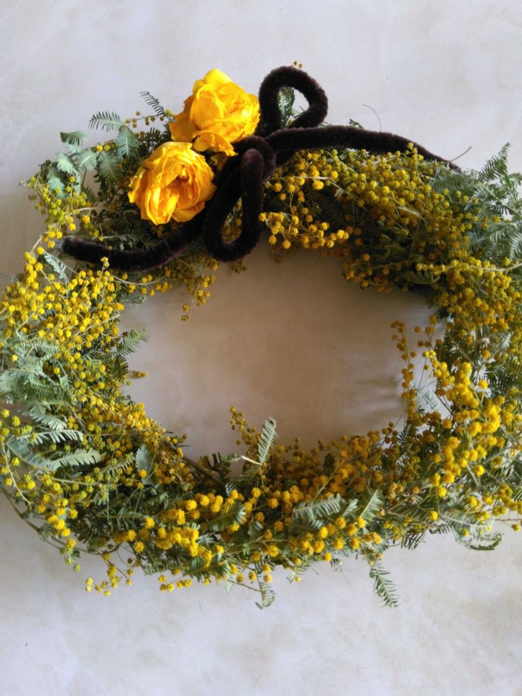 ミモザのリース 素敵ですね🥰💛💚🤎