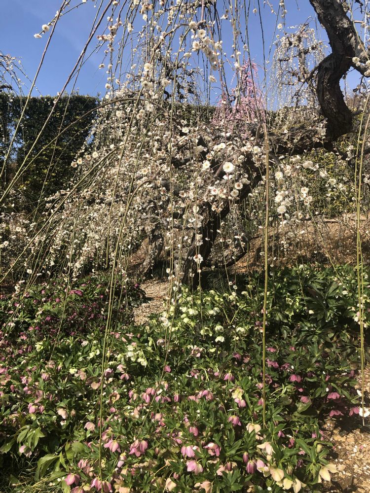 枝垂れ梅とクリスマスローズが見事です