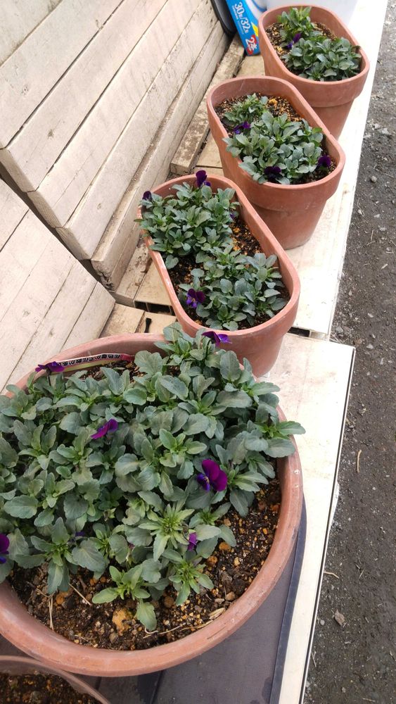 花芽が上がってくるたび摘まんで株元を拡げてきましたがそろそろ終わりにして🌸花を愛でようと思います。手前の鉢は3株でいっぱいになり、開花に期待出来そうです。😃