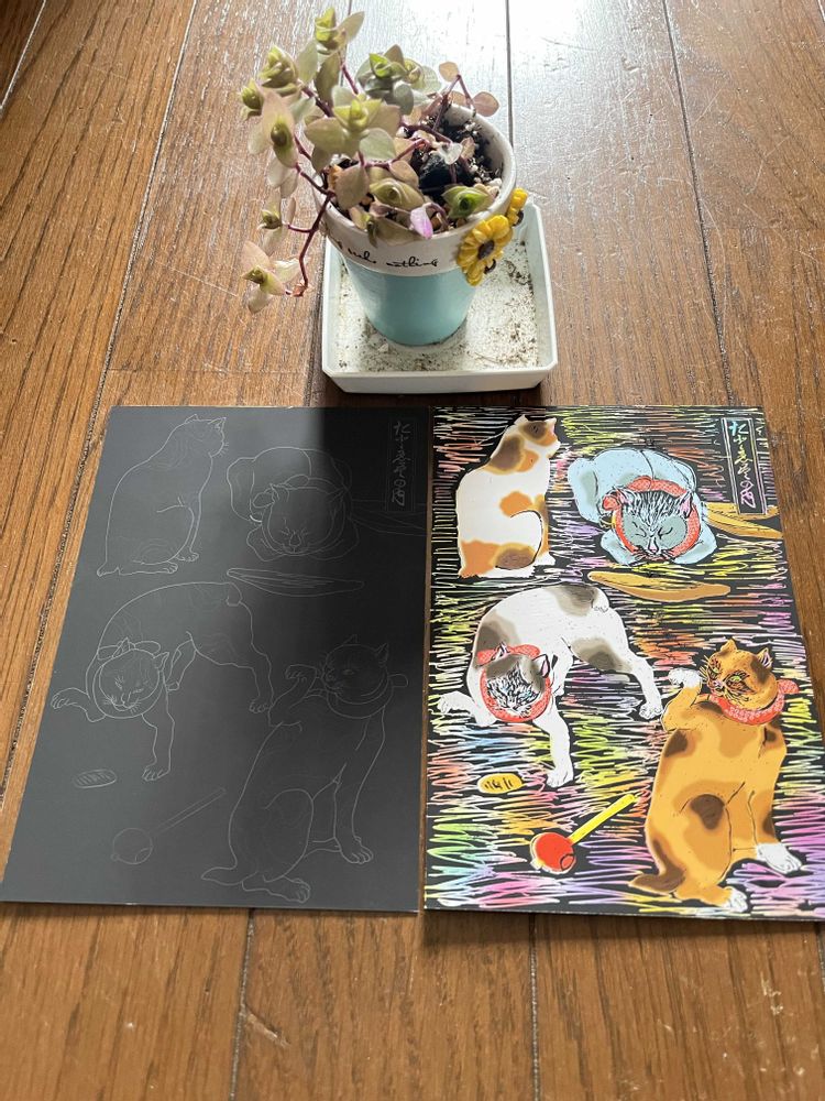 スクラッチアート🎨、毎回、おこたさんのは見応えありますね💕︎