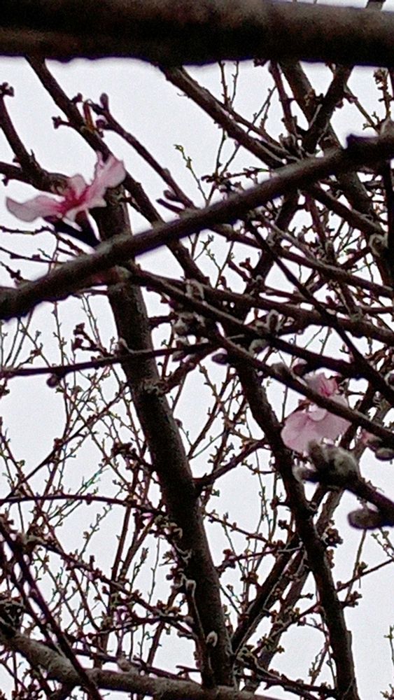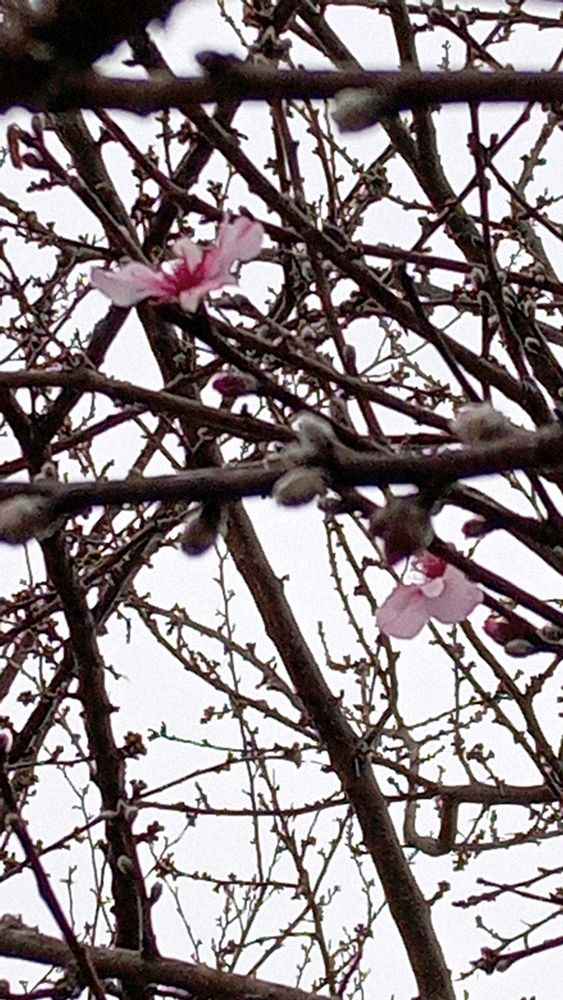 ②③は今年2025.3.11現在の同じアーモンドの木 ようやく見つけた花、1本に3−4輪