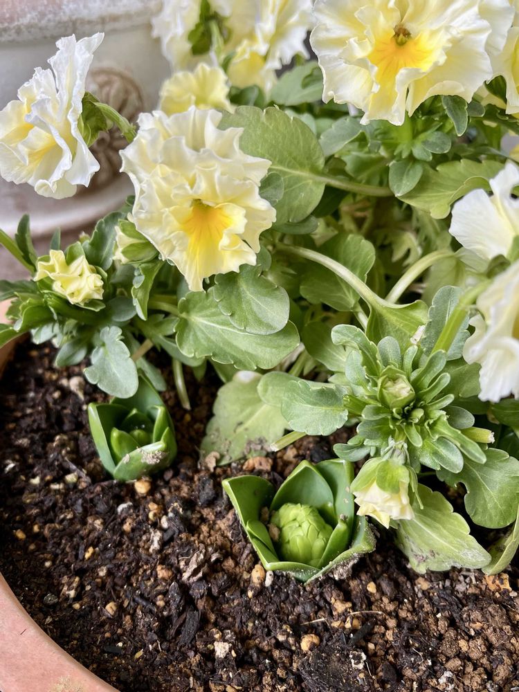 ②ビオラと一緒に植えたヒヤシンスもやっ〜と顔を出してくれた😆