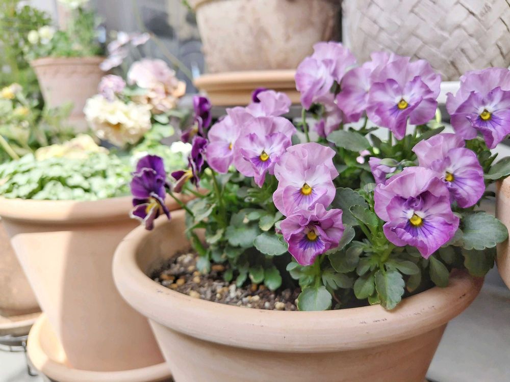 見元園芸さんのビオラ、桃色レジーナがたくさん咲いてきました✨あたたかくなってきましたね。