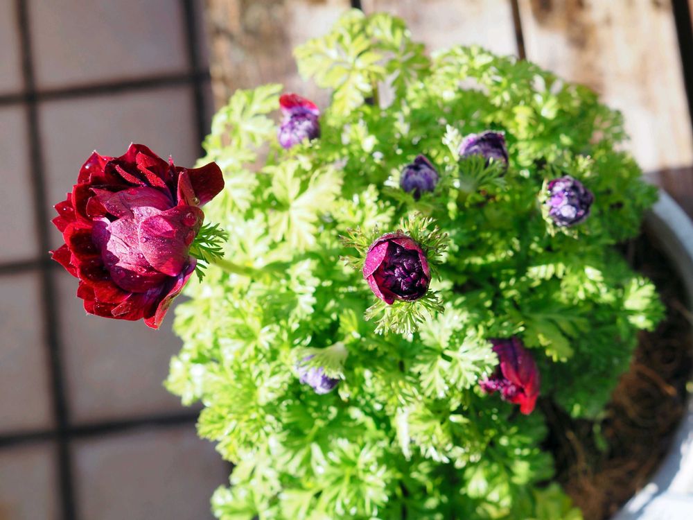 植木鉢に植えっぱなし3年目の八重咲きアネモネの蕾がたくさん👀