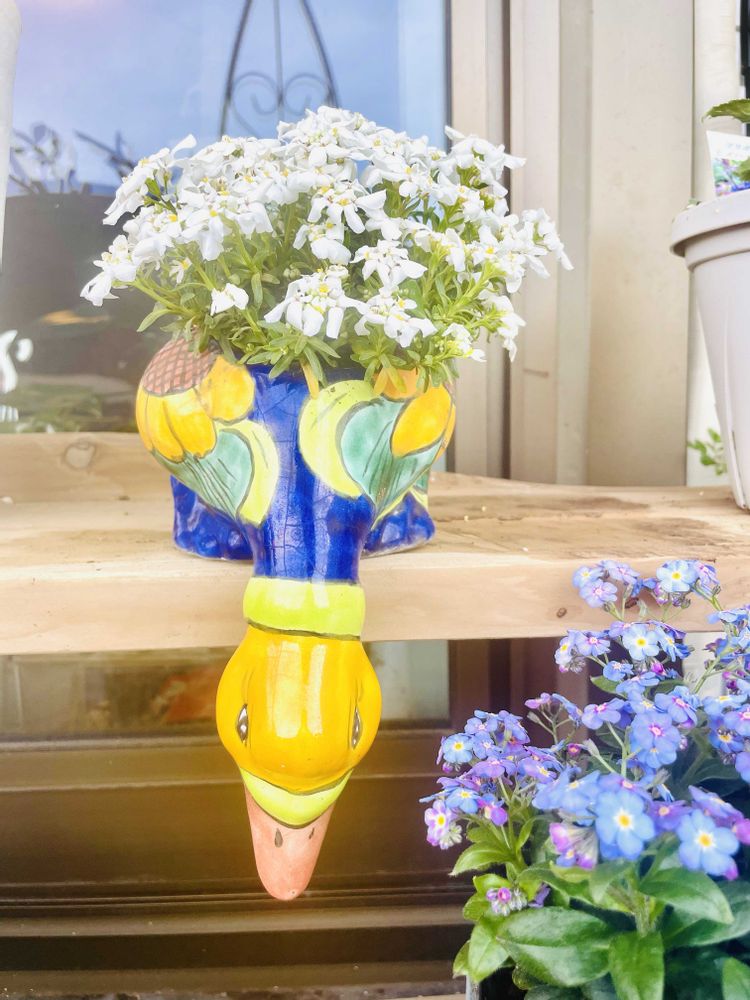 昔 ロスから車で国境を超えてティファナというメキシコの街に行った事があります。数多くあるお土産屋さんの裏庭にひっそりあったのが、このアヒルの鉢。口が底穴になっています(笑)