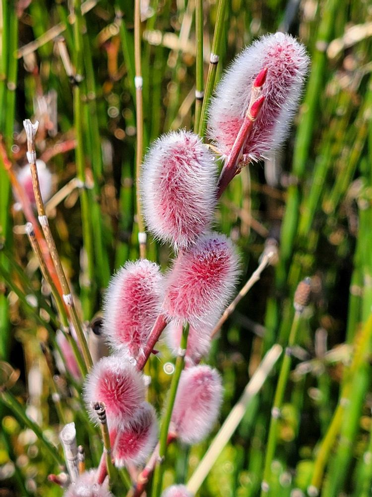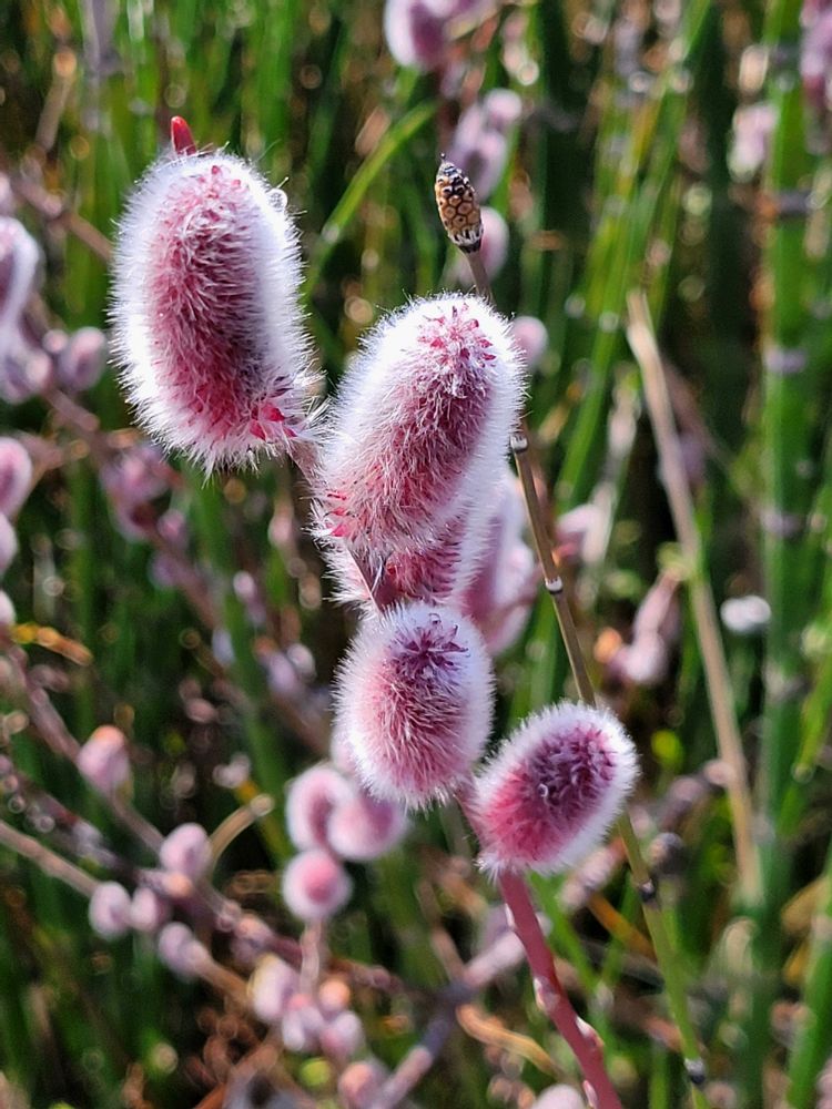 散策路沿いの花壇で、モフモフのネコヤナギに出会いました。