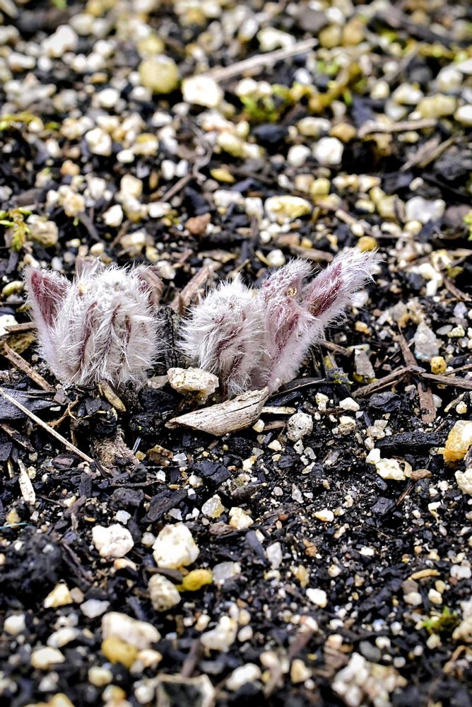 翁草・・・発芽 当初は、ご覧のように モフモフなのですが、大きくなるに したがって モフモフ感は 少なくなります