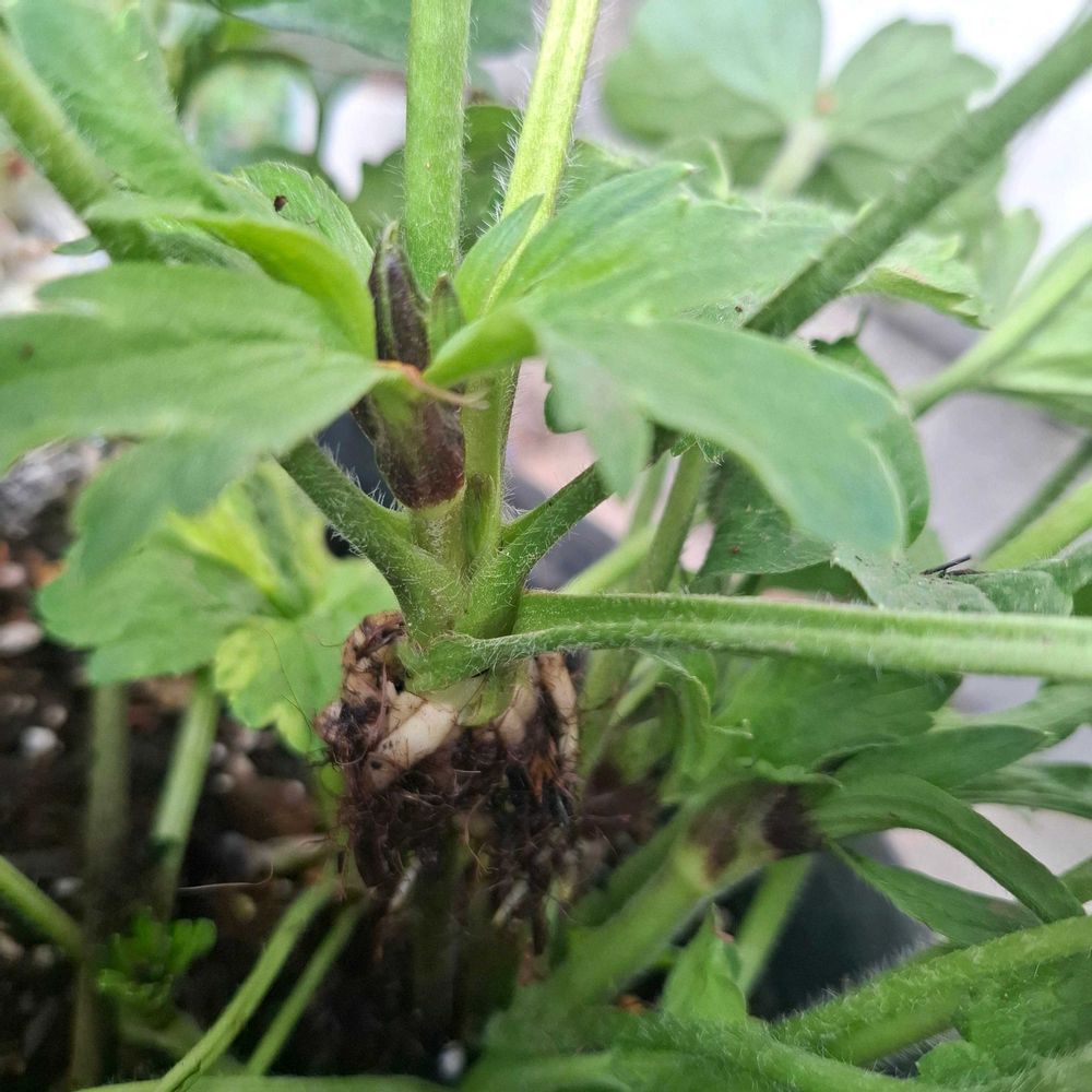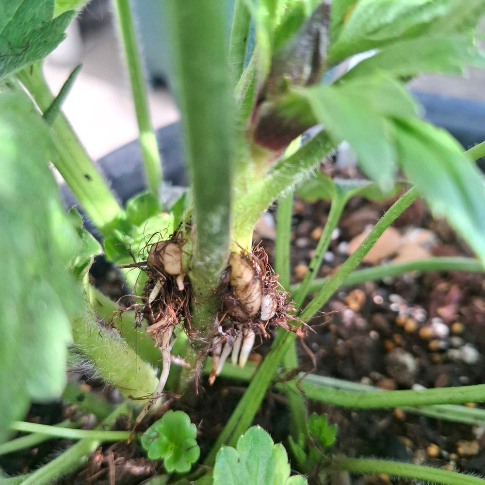 ☝️…エリスが開花~茎からの発根(2月21日投稿)…その後、塊根から白根が出て蕾まで付いたので✂️