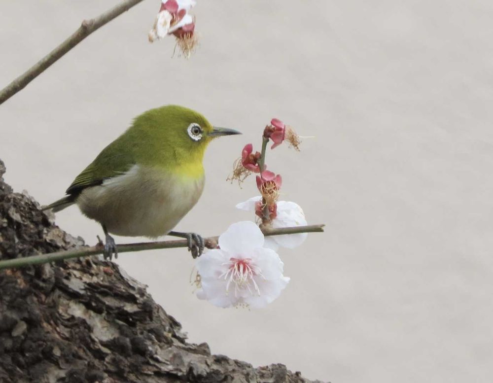 白梅とメジロ