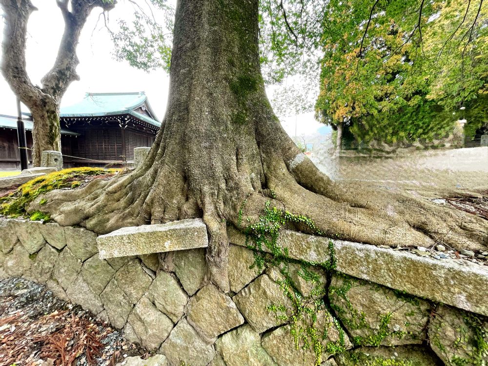 m&oさんの病院へ行く途中で,野田神社の樹木,石垣のブロック抱き込んで成長何十年の投稿画像