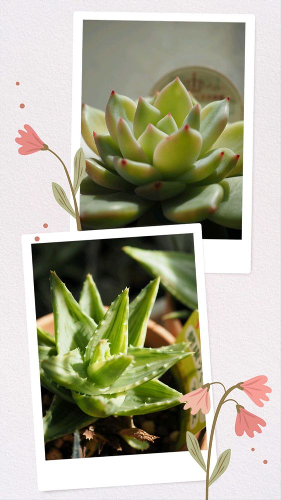 1️⃣エケベリア シャーロットと、アロエ 不夜城錦の爽やかコンビ♫