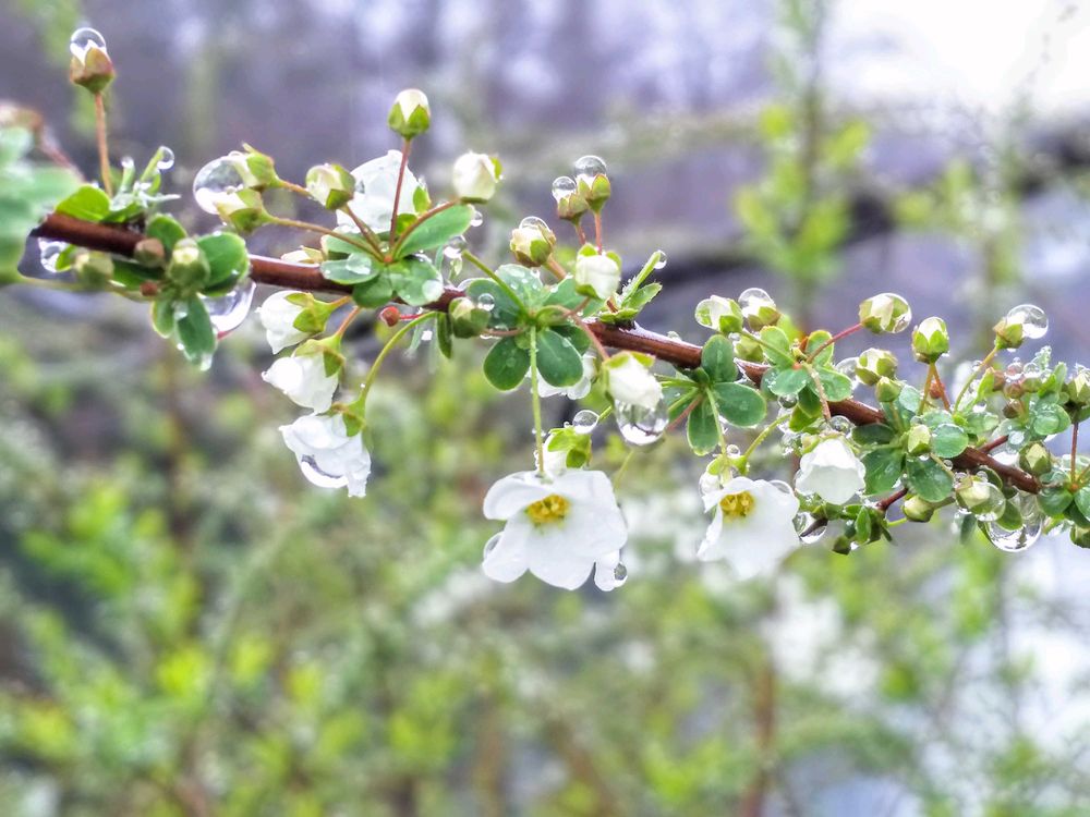 「ユキヤナギ」水滴がついて 涙のよう…💧✨️