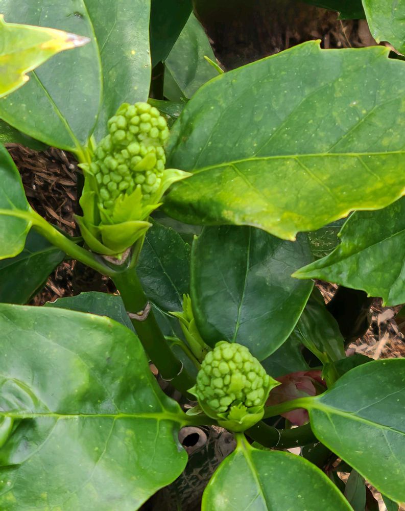 青々とした葉🌿埋もれる様に蕾塊が側にはまだ赤い実を見ることが出来ました💓😊✨️