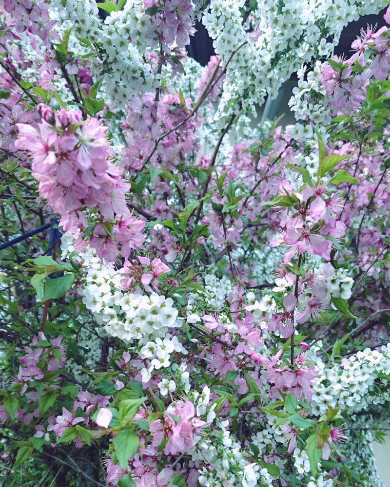 白とピンクのユキヤナギのコラボはとても美しいですね。