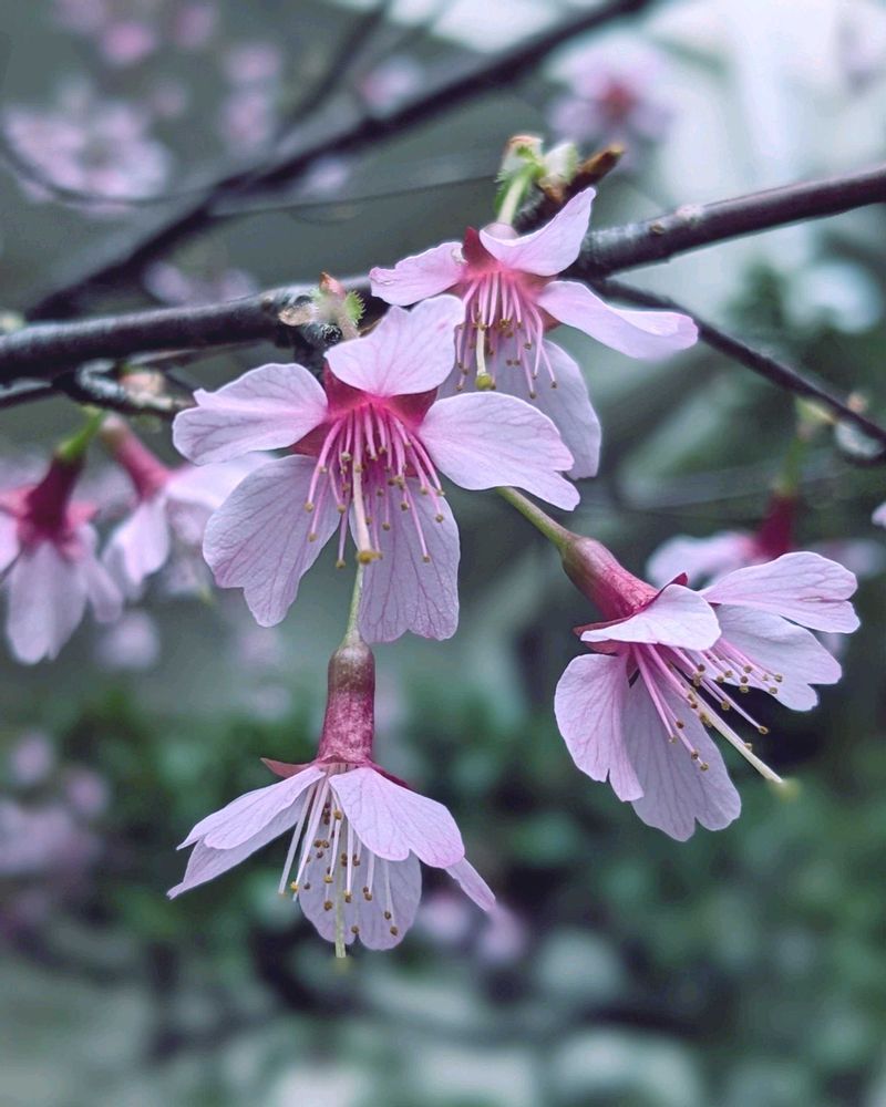 オカメザクラって花びらがひらひらした感じて蕊がとっても長いピンク色🩷の可愛いお花ですね🥰