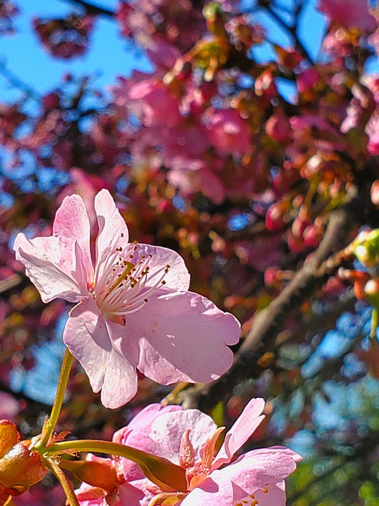青空に映える梅と河津桜 華やかが伝わります🌸🌸